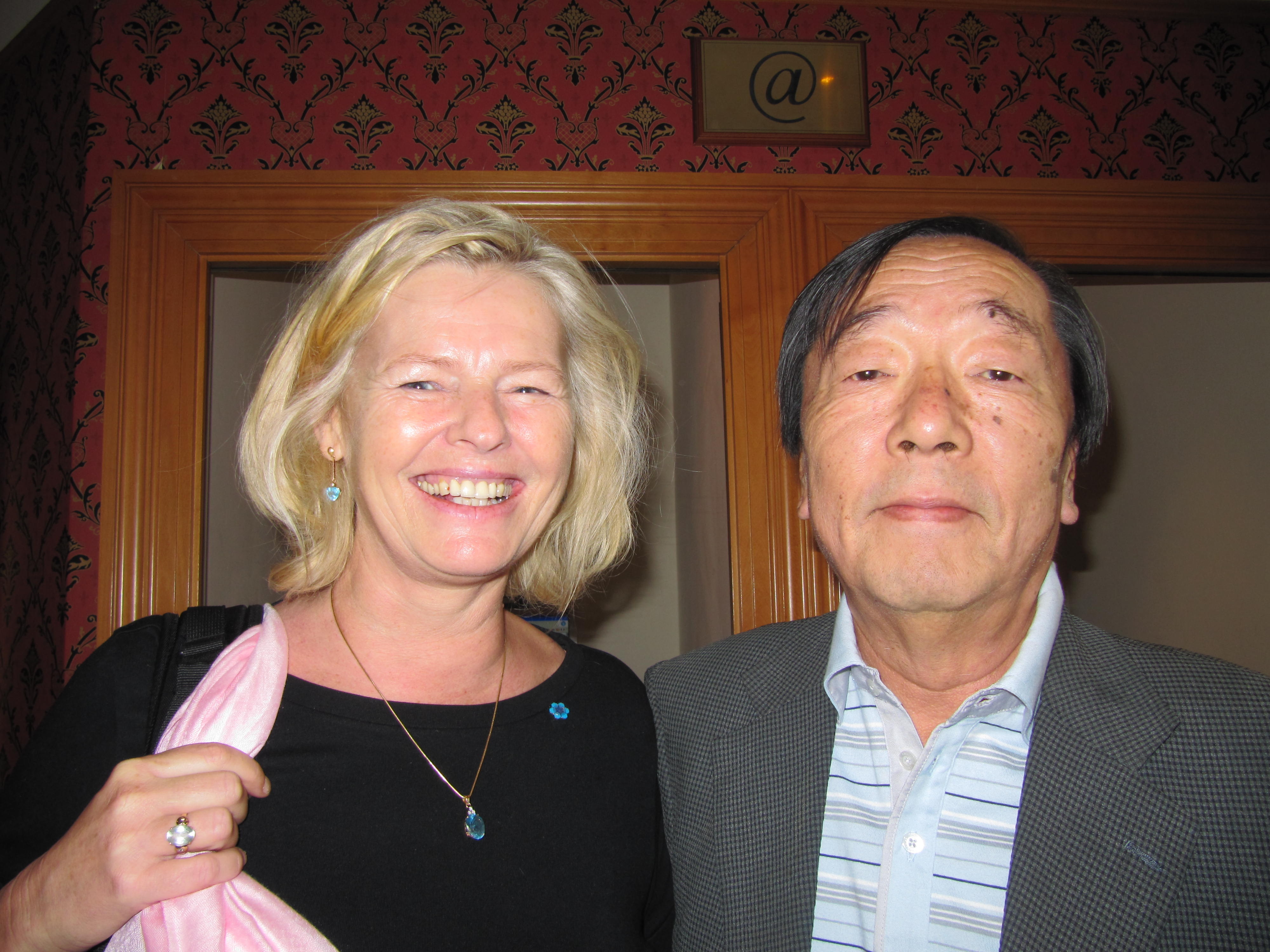 Hier sehen Sie Dr. Emoto mit der Grafikerin Karin Spreitzer und Burgi Sedlak, die alle seine Vorträge in